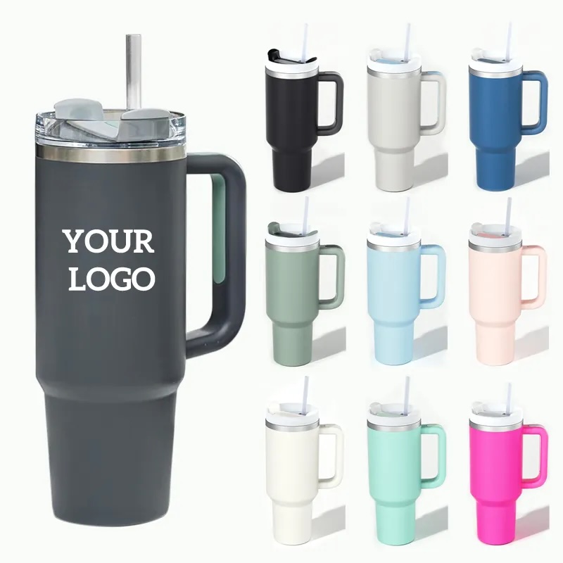 The 40 oz Stainless Steel Tumbler combines durability, functionality, and style, perfect for outdoor enthusiasts, commuters, and professionals. Its generous capacity and convenient handle keep drinks hot or cold for long periods, making it ideal for travel, hospitality, and outdoor recreation industries to use in promotional campaigns.